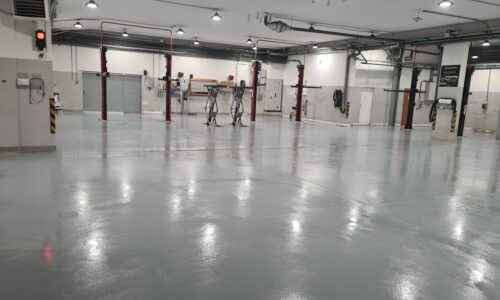 Új műgyanta padlóbevonat készült a Realsystema autószerelő műhelyben.