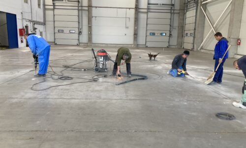 A Delta-E és a Monotop Kft szakemberei ezúttal egy elhasznált, sérült betonpadlót vettek kezelésbe. A nagyobb kitérések kijavítását követően a felületen durva csiszolást végeztek, majd a végső felületképzést a gyors, hatékony, következésképpen kedvező árú RinolDRT technológiával végezték.