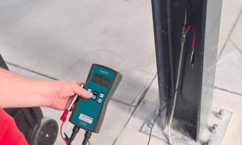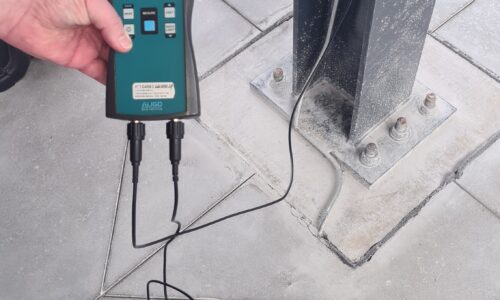 A felület keménységét a beavatozás előtt és után is mértük: kezdetben kb. 5-ös, a csiszolást követően 7-es Mohs értéket mértünk. A felület elektromos levezető képességét is mértük, és az megfelelt a vezetőképes padlókra általában előírt követelményeknek is.